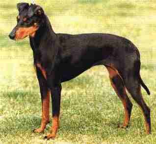Allgemein: Ursprünglich hielt man den Manchester Terrier in den Docks von Liverpool, wo er als 'Rattenkiller' eingesetzt wurde. Seinen Namen erhielt er von der Gegend Manchester, aus der er stammt. Um ihn auch für die Hasenjagd gebrauchen zu können, kreuzte man Whippets (Windhunde) ein.