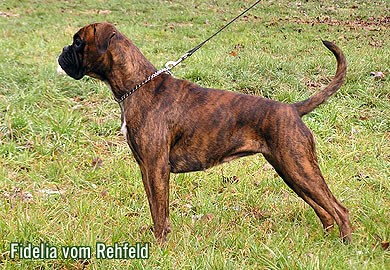 Allgemein: Der Urahne des Deutschen Boxers, der alte Bullenbeisser, wurde in Deutschland und Holland zur Hirsch- und Wildschweinjagd verwendet. Die heutige Form des Deutschen Boxers entstand aus Kreuzungen von Danziger und Brabanter Bullenbeissern mit ausländischen Rassen. Der Boxer ist ein mittelgrosser, glatthaariger, stämmiger Hund mit kurzem, quadratischem Gebäude. Seine Bewegungen sind lebhaft, voller Kraft und Adel. Der Deutsche Boxer gilt als idealer Familienhund.
