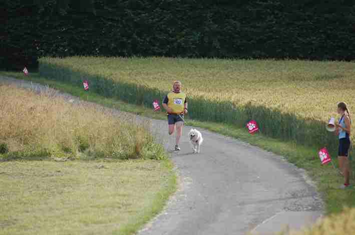Die Zugleine darf maximal drei Meter lang sein. Während dem Rennen muss der Hund neben oder vor dem Läufer gehen.
